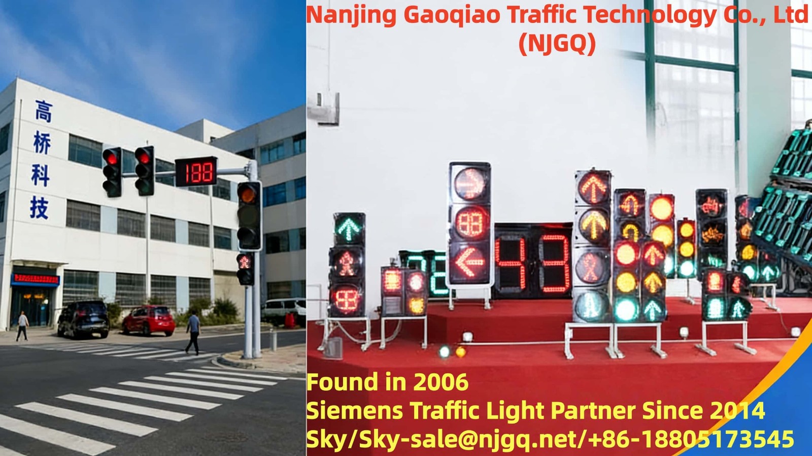 Nanjing Gaoqiao Traffic Technology Co., Ltd. is a nationally recognized top Chinese traffic signal manufacturer, founded in 2006. It specializes in R&D, production, sales and after-sales of high-performance LED traffic lights, intelligent traffic controllers, pedestrian signals and full-range traffic safety equipment, with nearly 20 years of industry expertise and strict quality control.