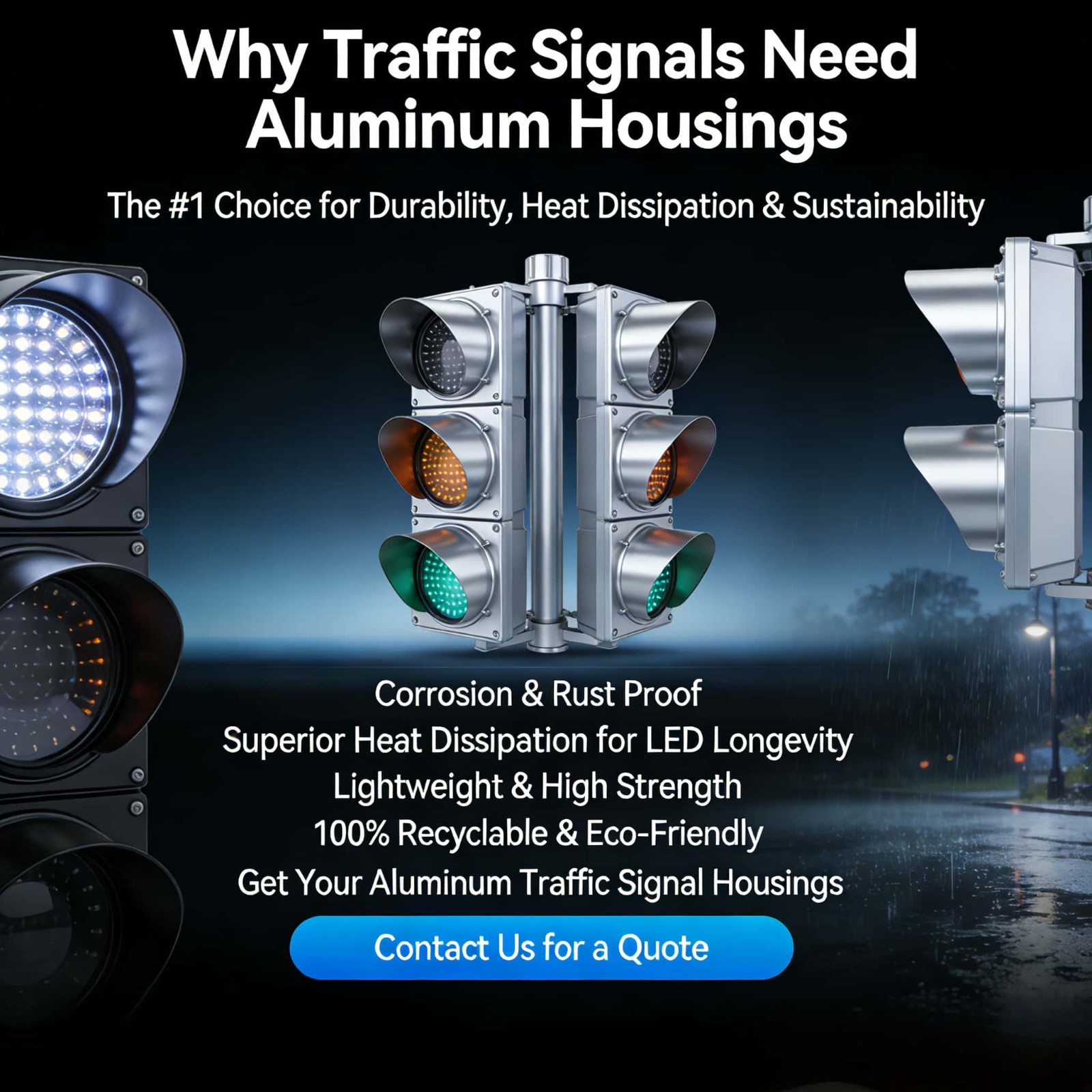 A: Modern traffic signals rely on aluminum traffic signal housings because aluminum provides unbeatable durability, weather resistance, heat dissipation, and long service life. Aluminum housings for traffic signals outperform plastic, steel, and other materials, making them the top choice for traffic safety and 24/7 outdoor operation.
